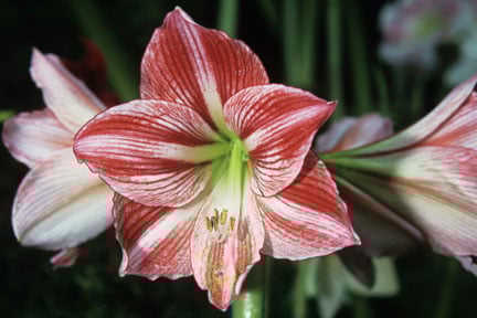 - Hippeastrum papilio AGM – unusual white flowers with deep red streaks and touches of green