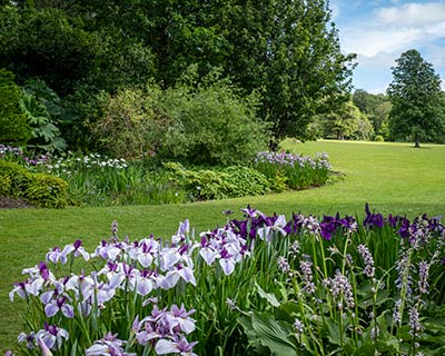 “Water irises don’t have the most robust of blooms so can be damaged equally by hot sunny days and heavy rain. Dappled shade can help them to bloom at their best and give a longer flower life. We use plants that like similar conditions, such as Hosta, Persicaria, Pulmonaria and Rheum to keep the different cultivars apart and prevent them getting mixed up.”