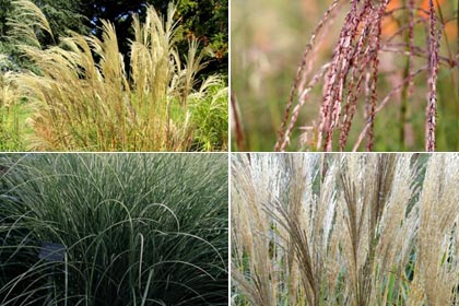 Miscanthus are reliable grasses that provide interest over a long period. Fountains of foliage grow up in early summer and bear plumes of white or pink flowers in late summer. As winter approaches these bleach into shades of biscuity brown. Tall cultivars suit the back of borders and smaller cultivars mingle well in beds with plants with bold, colourful flowers.