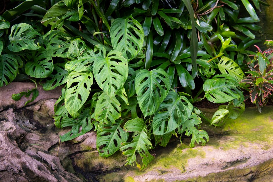 Swiss cheese plants are relatively easy to look after if kept at a temperature of 18–25°C (65–77°F), with moderate humidity, and in filtered or indirect light.