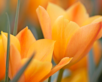 Tulipa orphanidea Whittallii Group flowers in late April and May with intriguing bronzed orange flowers, opening in small clusters. Often tinted in green on the backs, the base of the inside of each flower is almost chocolate in colour and surrounded by a hazy yellow. A sparkling tulip for full sun and good drainage. 20–25cm (8–10in). Hardiness rating H6.