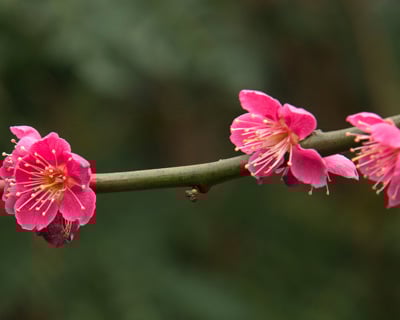 The blossoms of Prunus mume ‘Beni-chidori’ come out when spring bulbs emerge; timely and effective