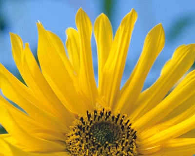 Helianthus ‘Monarch’ is a tall and dramatic perennial sunflower featuring flowers which are usually 15cm (6in) across, but which can be almost twice that if the side shoots are nipped out. In bright, golden yellow with a dark red centre which yellows as it matures, ‘Monarch’ is at its best in September and October. Often requiring support, it may become uncomfortably vigorous and so need controlling. Height can reach 2.5m (8ft). Hardiness rating H4.