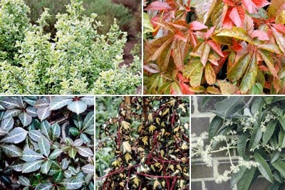 Climbers naturally scramble upwards, clinging to supports using twining stems, tendrils, stem roots or sticky pads. Wall shrubs aren't natural climbers, but their woody stems can be trained against a wall or fence. Some are evergreen and keep their leaves all year, others are deciduous and lose them over winter.