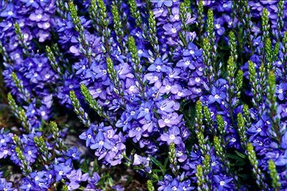 Veronica are a versatile range of summer-flowering perennials. The taller plants make excellent border subjects with other perennials and ornamental grasses, while mat-forming ones are good for border edging, groundcover or a rockery. Native speedwells including V. spicata are useful for wild gardens, meadows and light woodland. And there's one aquatic, native wildflower Veronica beccabunga to grow along a pond margin.