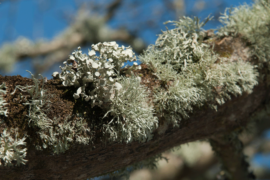 Lichens are often associated with good air quality. They carry out photosynthesis to capture atmospheric carbon, and certain lichens also absorb atmospheric nitrogen compounds, which are common pollutants. Lichens regulate water and humidity levels by soaking up moisture during wet weather and then slowly releasing it as water vapour.