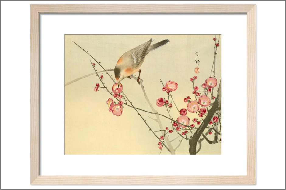 This watercolour of a White-eye with Prunus blossom by an unidentified Chinese artist will bring spring to your home year-round.