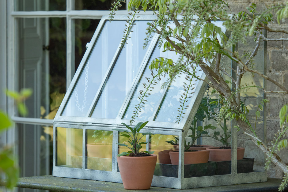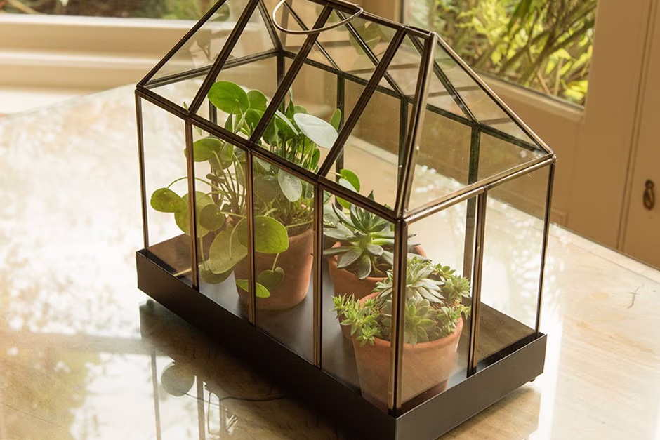 Choose this quirky miniature greenhouse to keep plants such as succulents cosy.