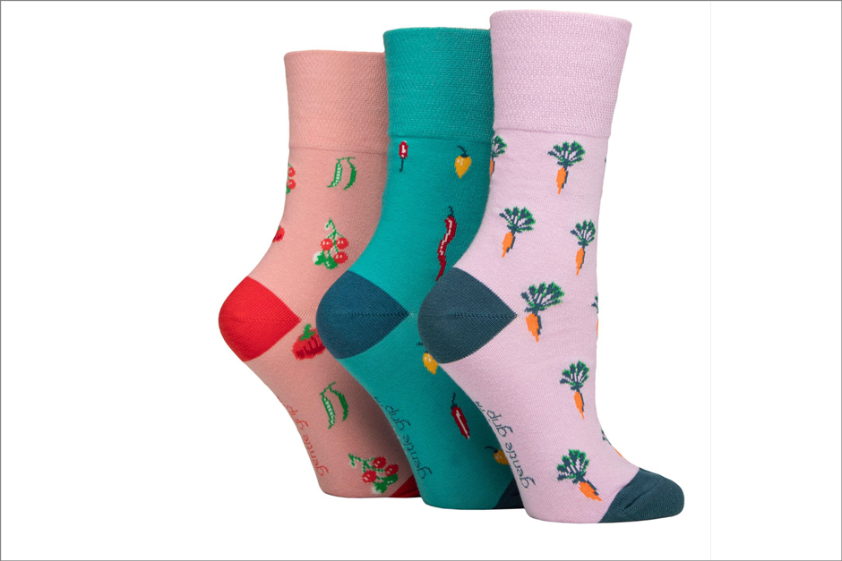 A trio of cotton socks featuring RHS botanical designs