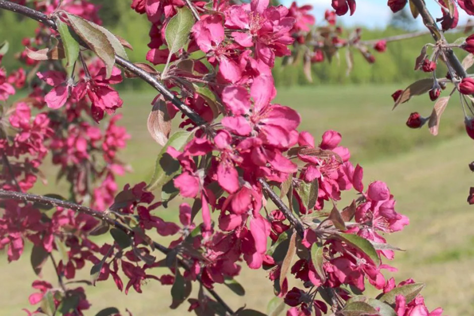 This show-stopping crab apple has pink semi-double flowers tumbling from arching branches, followed by rich foliage.