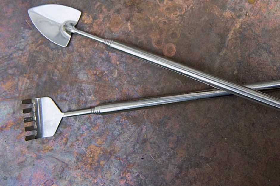 Make maintaining plants in large bottles easier with a telescopic, handled mini shovel and rake.