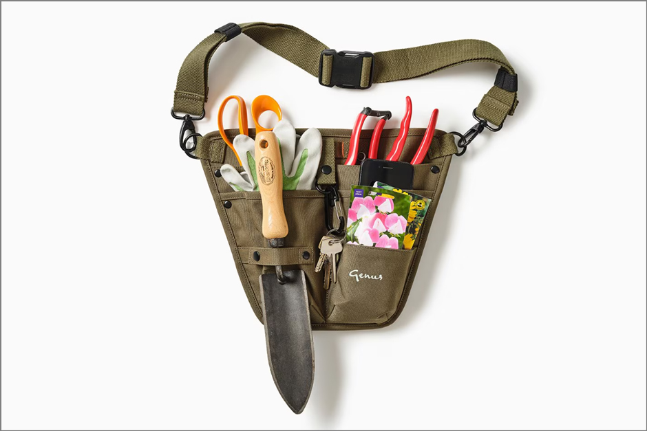 For those who take their gardening seriouslyu001d this holster is made of hard-wearing canvas with compartments for twine and tools. It’s even tough and roomy enough for a hori-hori gardening knife