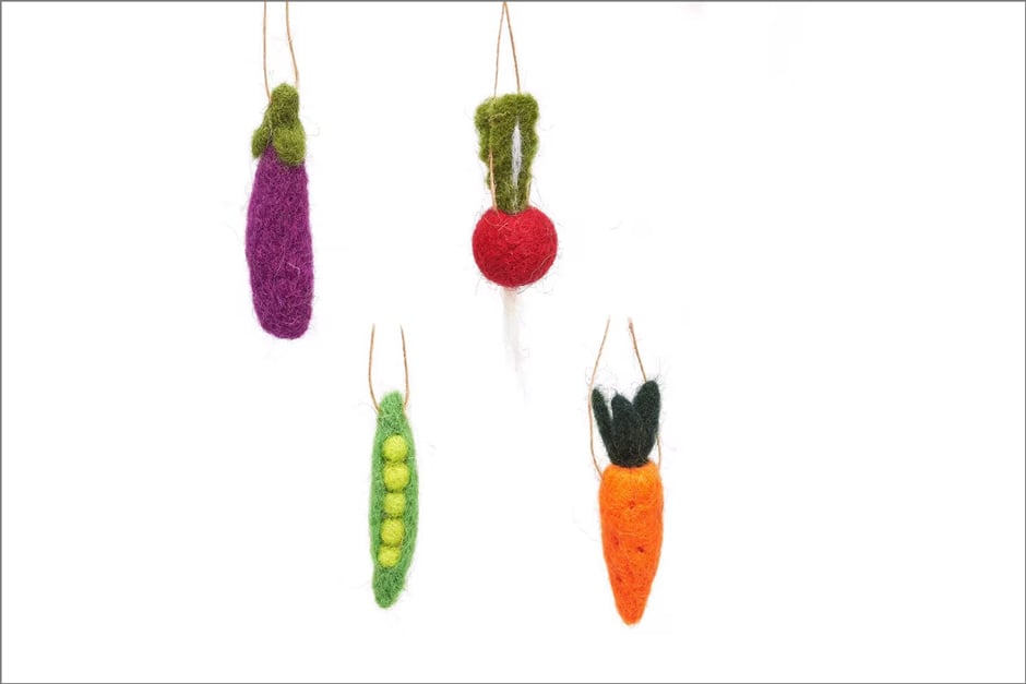 Quirky and colourful handmade decorations for a festively gardening- themed tree. Online only.