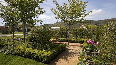 The UCARE Garden, sponsored by Champagne Lanson International, Solar Clear UK Ltd and CED Stone Group, is inspired by Broughton Castle, a fortified manor house near Banbury in Oxfordshire and home to Lord and Lady Saye and Sele, patrons of the charity. It has been designed to display the beautiful pink UCARE tulip, Tulipa ‘Caresse’, a symbol of hope in the treatment and care of patients with urological cancers.