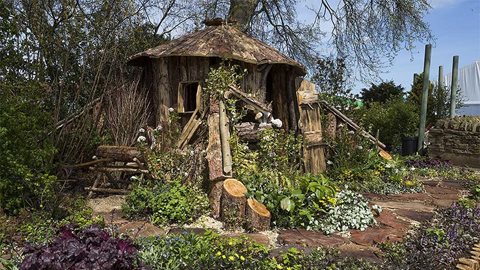 The Woodcutter’s Garden is based on the designer's novel The Woodcutter’s Story. The central feature is the hut situated on the edge of a bluebell wood. Angus Rowan, a simple woodsman, carpenter and gardener, and Poppy, a homemaker and devoted wife, live their day-to-day life here.
