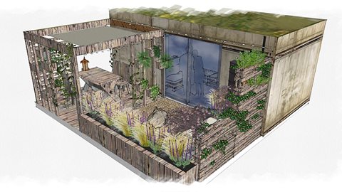 Inspired by a trip to Finland, this is a simple, low-maintenance garden created for someone living in a small rented home. The garden design is influenced by the popularity of reclaiming and recycling materials and has a brief to be wildlife friendly, sustainable, functional and affordable.