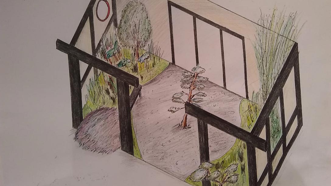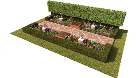 The garden celebrates the 75th anniversary of VE Day. It is inspired by the allied airborne invasion of Arnhem to secure the bridge of that city.