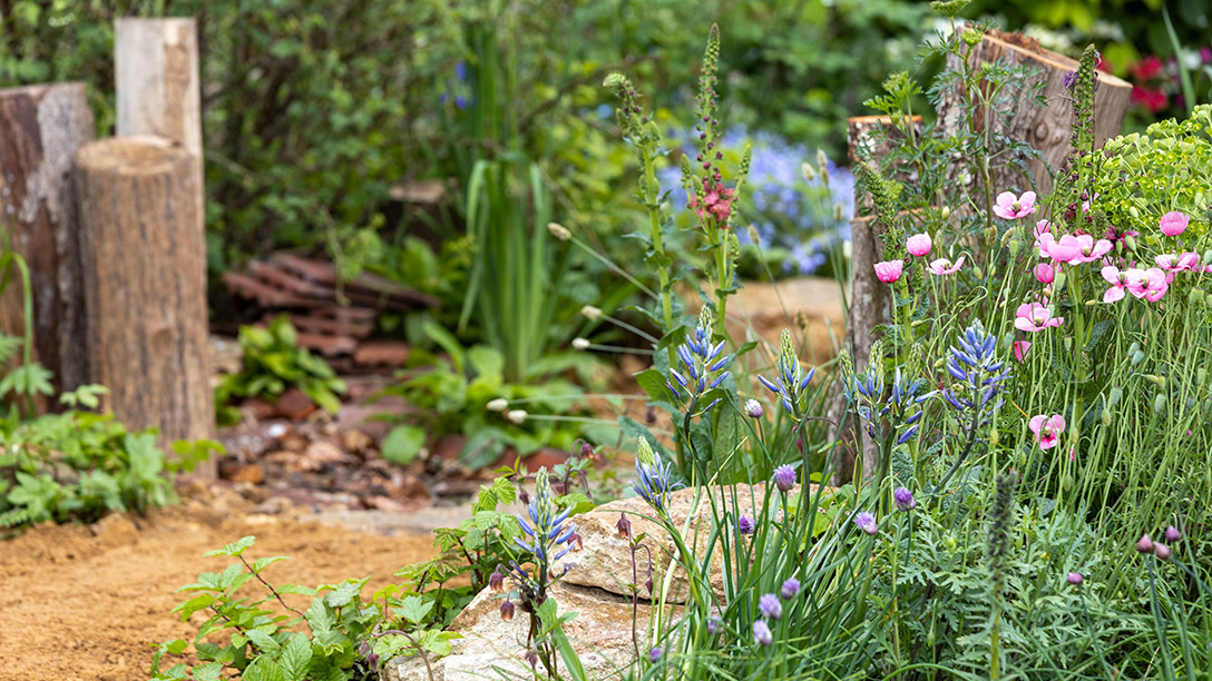 The garden aims to take wildlife gardening to a new level, where the structure, topography and materials used – as well as the planting – play a fundamental part in increasing biodiversity. Wildlife habitats are designed into the structure of a garden, using building waste, reclaimed material and untreated timbers.