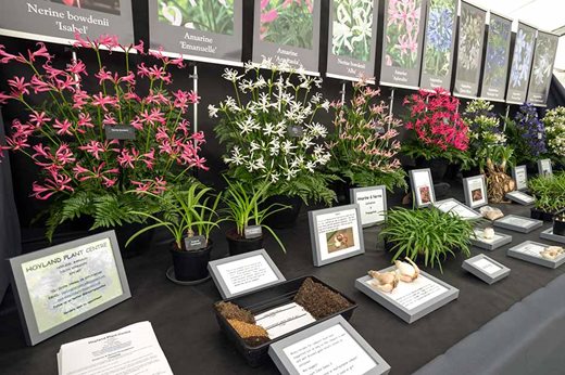 A stand as informative as it is attractive, Hoyland Plant Centre’s display featured examples of Agapanthus, Nerine, and X Amarine (a Nerine and Amaryllis cross). All are ideal for adding late summer and autumn colour to even tiny plots, when many other plants are past their best.