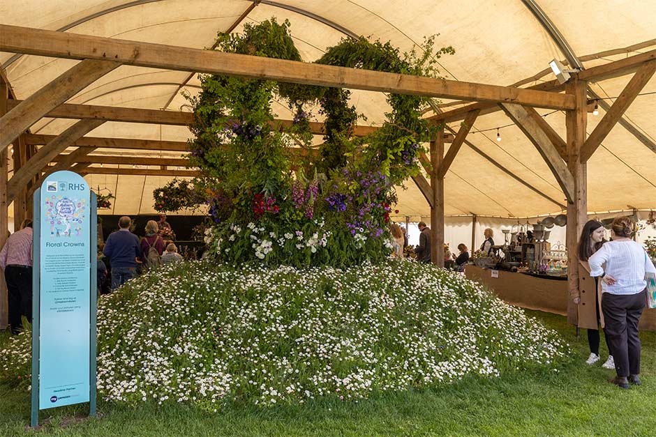 Other floral crowns at the festival showcase the amazing diversity of UK-grown cut flowers and the innovation of florists using material from perennials, climbers, shrubs and dried flowers, including some not often seen dried such as rudbeckias.
