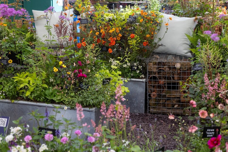 Getting a Silver-gilt for your first ever RHS Show is quite an impressive feat, but for Gardener’s Delight it was a family effort, as Hannah explains. “It was our daughter Emma who designed it. She’s got the artistic eye, we just grow great plants!” They have been growing peat-free for over five years, but this is the first time the Devon-based nursery have come to an RHS show, to spread the word and help inspire a generation not brought up with gardening. Targeting people in their 20s-40s who are interested in growing but don’t know where to start, the display of container plants shows examples of tough easy-care plants, great for a starter gardener who doesn’t have much space or know-how. The Gardener’s Delight team are on hand to give advice and recommendations to their customers, “We want them to be as passionate about growing as we are” says Hannah.