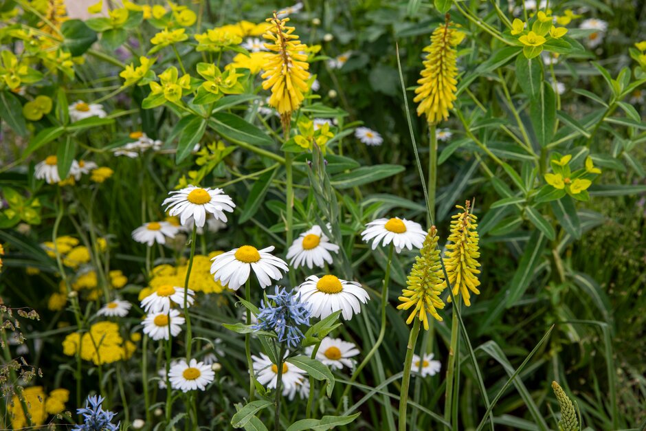 deadheading the Geum, but leave the flowers of the Cirsium, which will hold its seedheads across the summer. Both are great for pollinators.