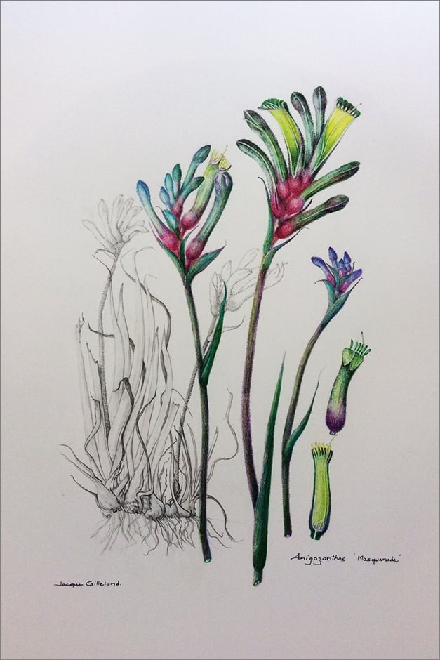 Jacqui has been painting botanically for the last 20 years, initially working in watercolour before switching to coloured pencil 15 years ago. She studied under Jenny Phillips, Barbara Duckworth and Helen Fitzgerald amongst others. Jacqui has exhibited and sold works in Western Australia, Victoria, New South Wales and Canberra. Her preferred subject is Eucalypts and their gum nuts, working in graphite with just a touch of colour.