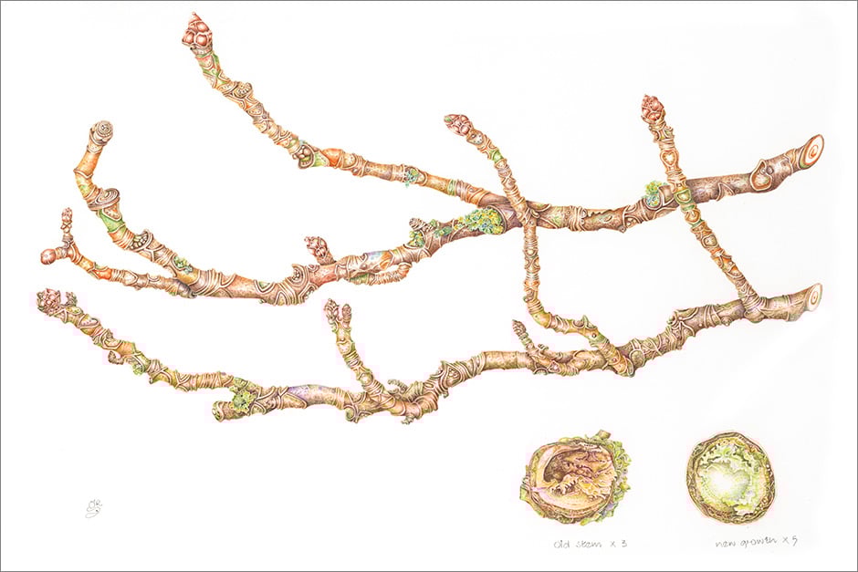 Surjit was born in Nairobi, Kenya and graduated in Graphic Design from the University of Nairobi before moving to Leicester, UK. Developing an interest in botanical illustration in 2010, she became inspired and fascinated by nature, plant growth, its complex structural forms and variations of colour. Surjit works in watercolour and takes delight in observing the minutiae of botany.