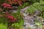 The planting includes trees commonly seen in the landscapes of Japanese satoyama (countryside), including Acer palmatum, Enkianthus perulatus, Iris, Sedum, Hornbeam and Pachysandra terminalis.