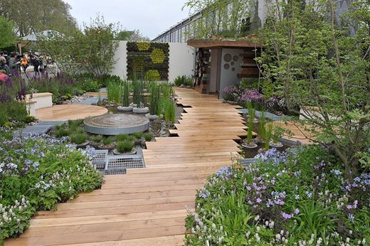 This garden was the RHS Chelsea Flower Show’s first full-scale “rain garden” designed to capture and use every single drop of rain fall. It was relocated to the Slimbridge Wetland Centre in Gloucestershire, where visitors can gain tips on how to garden sustainably.