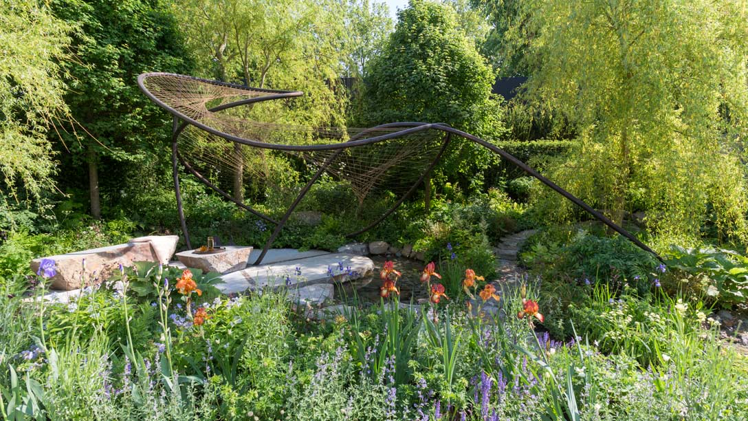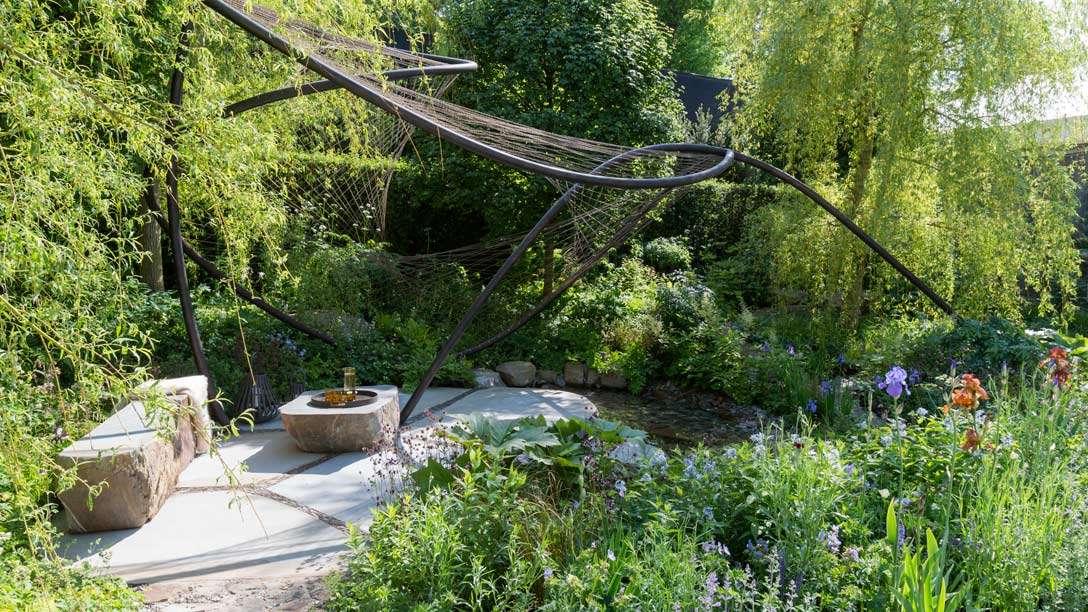 Towards the late 18th century, secret gardens and tea gardens were the perfect destination to socialise, enjoy nature and drink tea. The Wedgwood Garden is a modern interpretation of these leisurely spaces where there is a true sense of British fun and luxury.It is designed specifically as a garden for a woman, with an ephemeral pavilion that appears to dance over a stream, which meanders through harmonious planting and naturalistic rocks and boulders. The space can be entered via openings in the planting at the garden’s edges and the sensory experience of smooth stone underfoot is immediately apparent.
