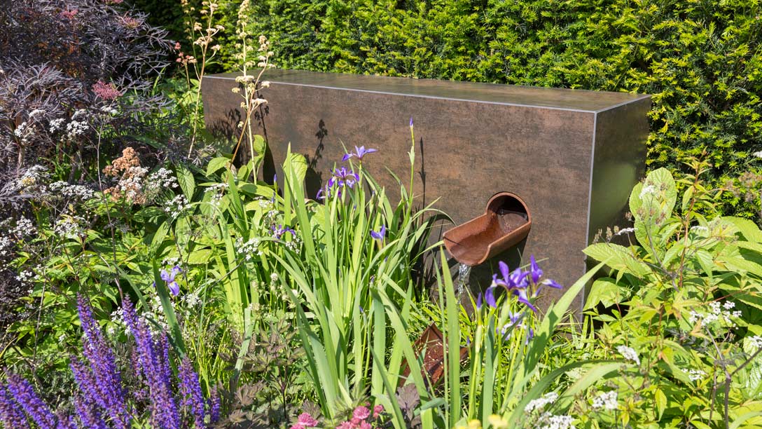 The Urban Flow Garden has a carefully selected range of plants that includes stunning leaf colours, leaf shapes, foliage habit and stem interest, providing interest beyond peak-flowering season. Plants have been selected to tolerate a range of unpredictable climate conditions, with some able to cope with excess moisture and others tolerant to drier periods. Key plants include Rosa glauca, Baptisia australis, Cornus canadensis and multi-stemmed Ginkgo biloba . Materials in the garden include traditional hand-crafted clay bricks, porcelain cladding and corten steel, their contrasting finishes providing inspiration for all.
