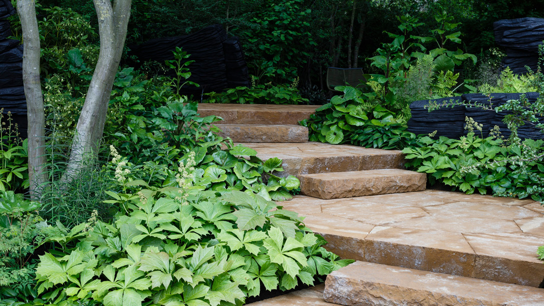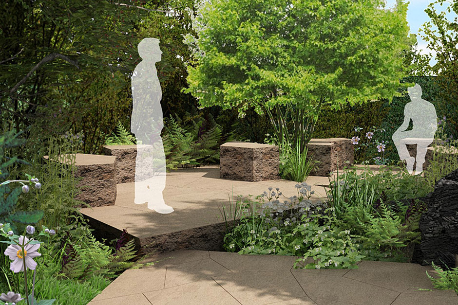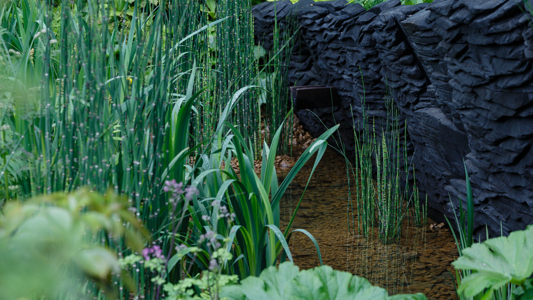 Inspired by nature’s power to regenerate, this woodland landscape will be interspersed with stone platforms and huge burnt timber sculptures representing natural rock formations. Populated by pioneering plants and jewel-like flowers, the landscape has been colonised by trees, ferns, primordial horsetails (Equisetum) and restios giving the garden an ancient quality.