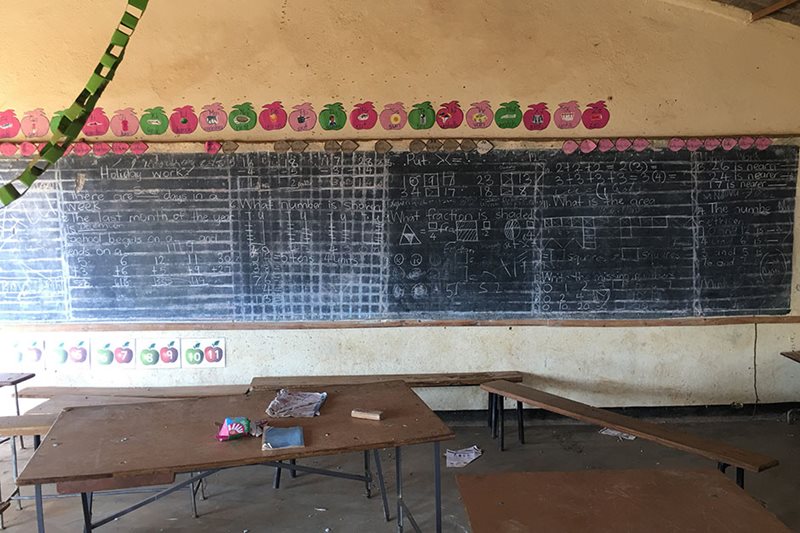 A water butt standing beneath the classroom’s roof (which links into a solar-powered irrigation system) demonstrates how water run off can be used to keep crops thriving in Africa too.