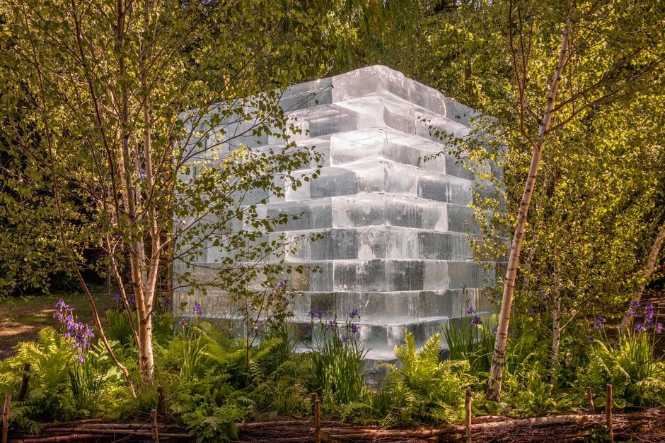 The Plantman’s Ice Garden featured a 15 ton, 2.5m cubed block of ice, that melted throughout RHS Chelsea as an icy reminder of the melting of the Siberian permafrost.