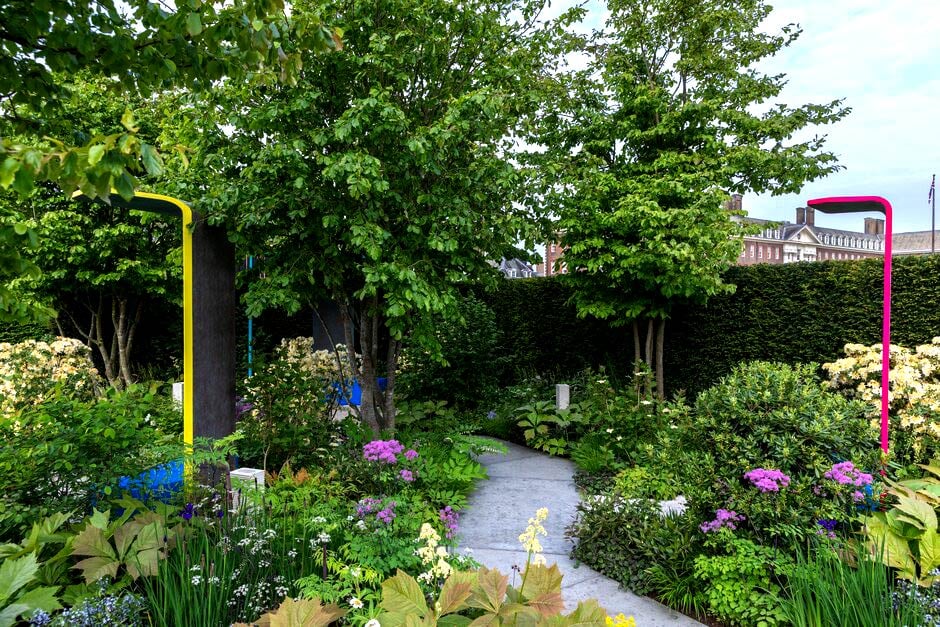 Animals have their own sanctuary with the RSPCA’s wildlife-friendly garden by first-time Chelsea designer Martyn Wilson, creating a space for both humans and creatures to live in harmony. The National Brain Appeal’s Rare Space has been created by designer Charlie Hawkes alongside people living with rare dementias, to offer a refuge for exploration and calm navigation.