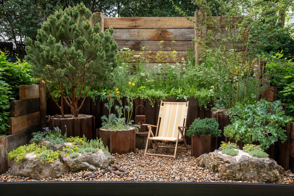 Designed to feel like being hugged, this garden was enjoyed by the public for both its story and its sense of playfulness, with surprising water spouts, water to walk through and a cocooning retreat to sit in. Surrounded by woodland planting, the garden hopes to challenge misconceptions and barriers faced by people with Down’s syndrome, reflecting on their compassion and empathy, positivity and determination.