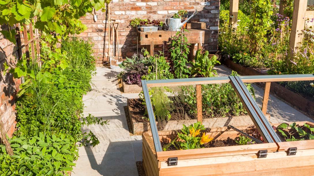 The garden has been divided into distinct areas, on one side, through three stepped-height pergola archways and along the reclaimed scaffolding path, is a kitchen garden. This area contains two raised beds for growing fresh seasonal produce. and the opportunity to experiment with horticultural curiosities. Positioned next to the kitchen garden and by the entrance to the indoor living space is a private seating area trailed with hops – a perfect place to sit and have a glass of freshly picked mint tea.