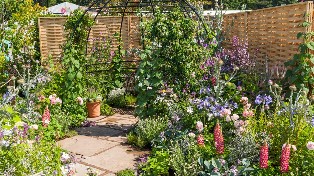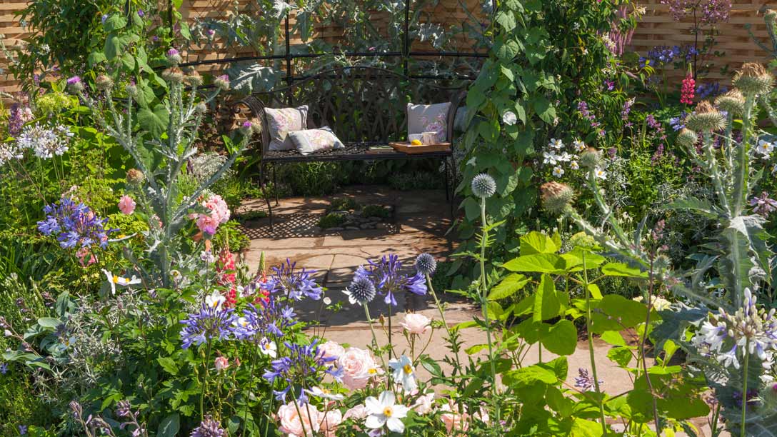 Arley's Thyme to Retreat is designed to provide a calm, tranquil and peaceful space, away from the hustle of busy everyday life and a space without techology. The pastel colour palette and use of scented flowers and herbs add to the sense of relaxation. Inspiration has been drawn from aspects of the gardens at Arley Hall & Gardens, with a mix of traditional landscaping and romantic country garden planting. The pathway of reclaimed York stone and cobbles is softened with herbs and alpine strawberries. The focal point is the arbour – the perfect place to sit back and relax.RHS People’s Choice Award