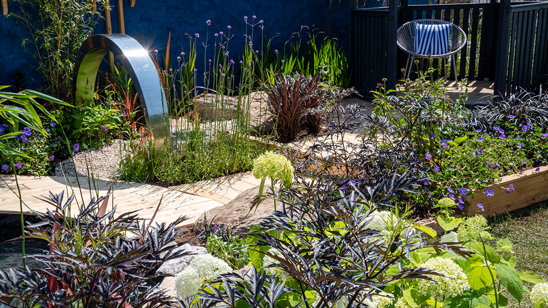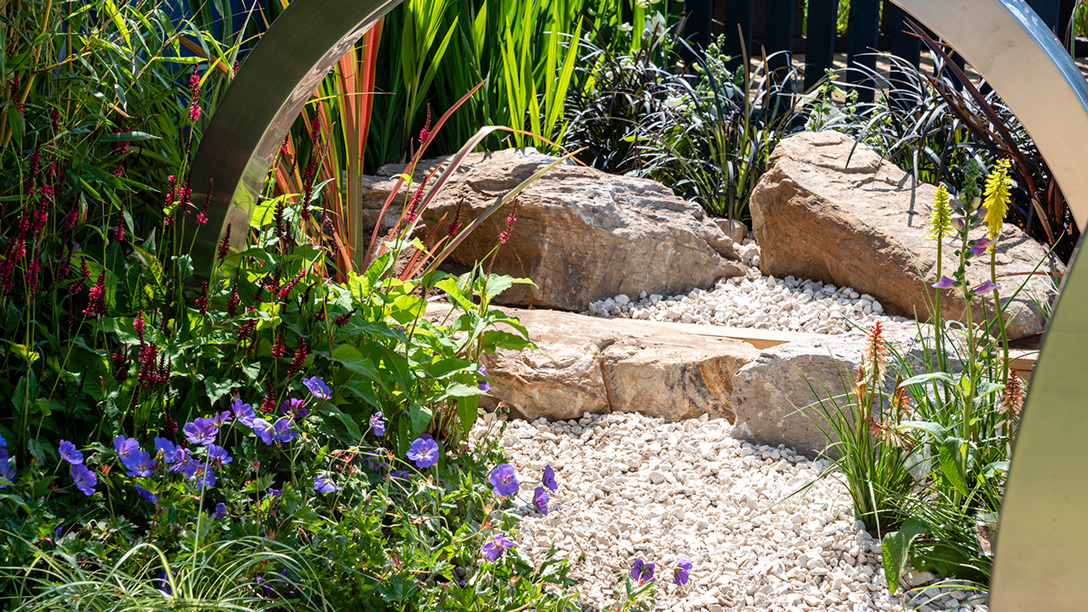 The service users co-designed the garden to highlight the impact of flooding and reflect the need to go back to nature to find solutions, through demonstrating what gardeners and the community can do to work with water and increase flood resilience. The garden features a rain garden system that collects water from a living roof and channels it into a large pond at the bottom of the garden. The plants included can cope in gardens that experience flooding.