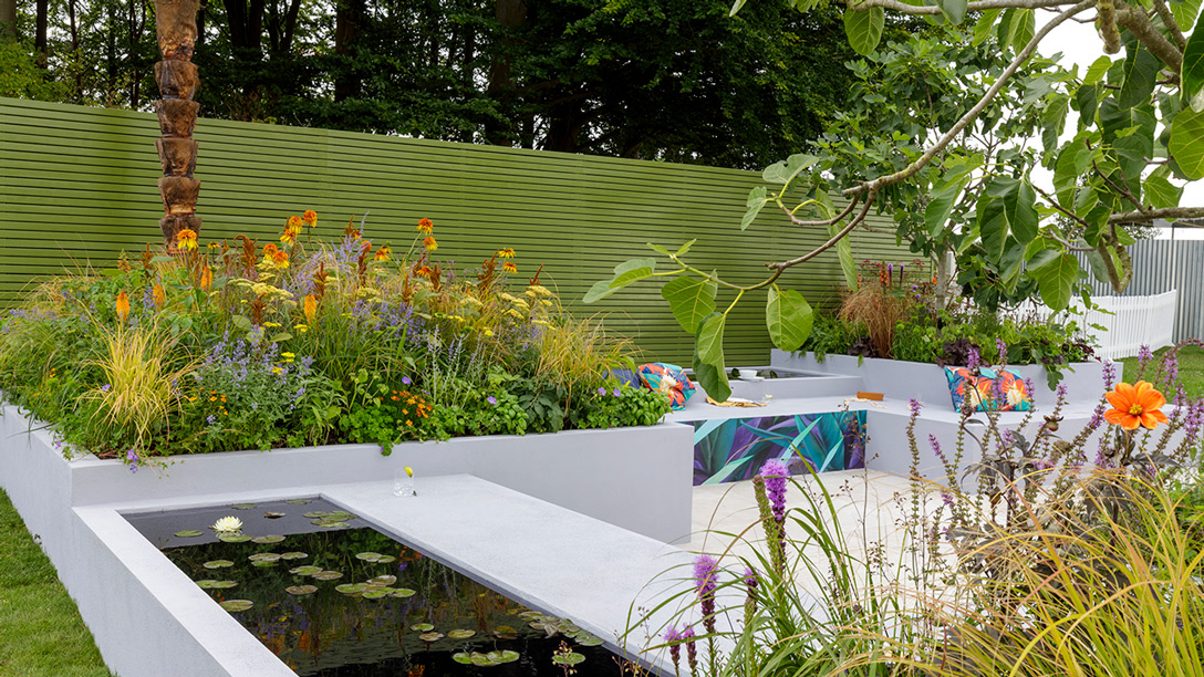 The title of the garden, ‘Come Lime With Me’, is a play on the British TV show Come Dine With Me and Guyanese/Caribbean slang ‘lime’ (liming is ‘the art of doing nothing while sharing food, drink, conversation and laughter’). Visitors can expect a fun atmosphere with vibrant planting that reflects a cultural mix inspired by the designer’s Anglo-Guyanese ethnicity.