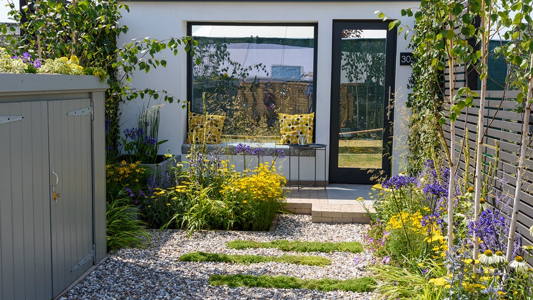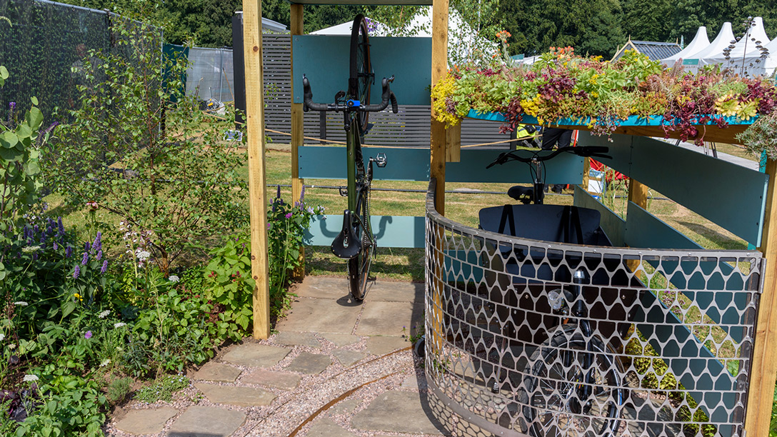 The garden provides practical and creative ideas for bike storage and features that help increase urban biodiversity. A rainwater harvesting system directs water to a compact forest garden, which is contrasted by an area of dry-garden planting where there is no irrigation.