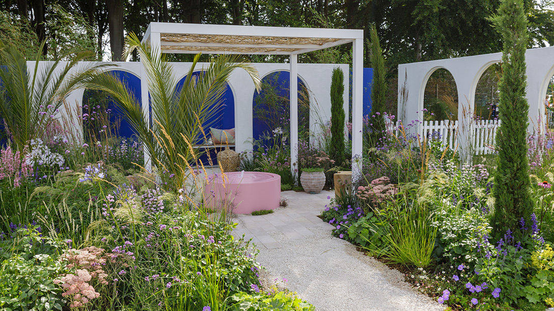 This garden has been designed to create a safe and tranquil space. It contains key aspects of a Moroccan courtyard and reflects the belief that a garden is an earthly version of Paradise. The layout is based on a Charbagh, designed around four quadrants with water at its centre. It is surrounded by a mix of plants with both scent and form to provide a visual experience and also one to awaken all senses. In our busy, ever-stressful lives and in particular with the impact of the Covid pandemic, this garden offers a sanctuary and a peaceful space to be.