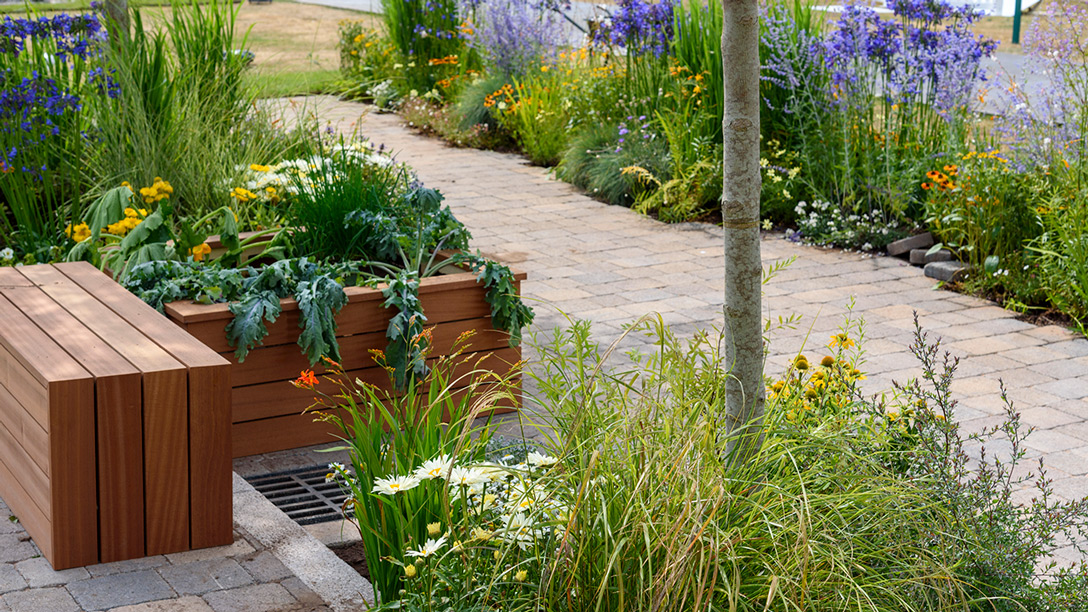 BBC North West Urban Community Garden demonstrates how even the most unlikely city centre spaces can be made into functional and accessible green spaces. The garden is set on a section of road that has been reclaimed for pedestrian use only and adapted into a community growing and gathering space.