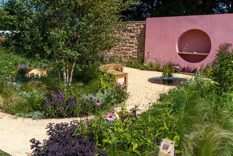 It’s Ok Not To Be Ok is a secluded garden with twisted paths, representing barriers the visitor can overcome by walking through. It leads to a bench which overlooks a water feature, offering a place to talk.