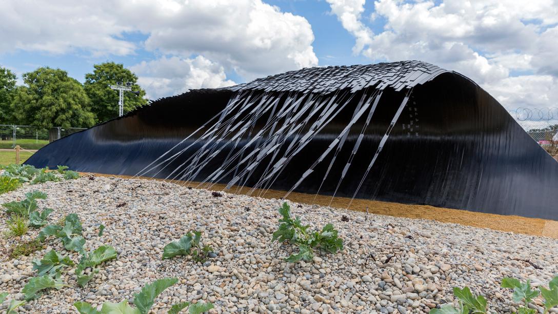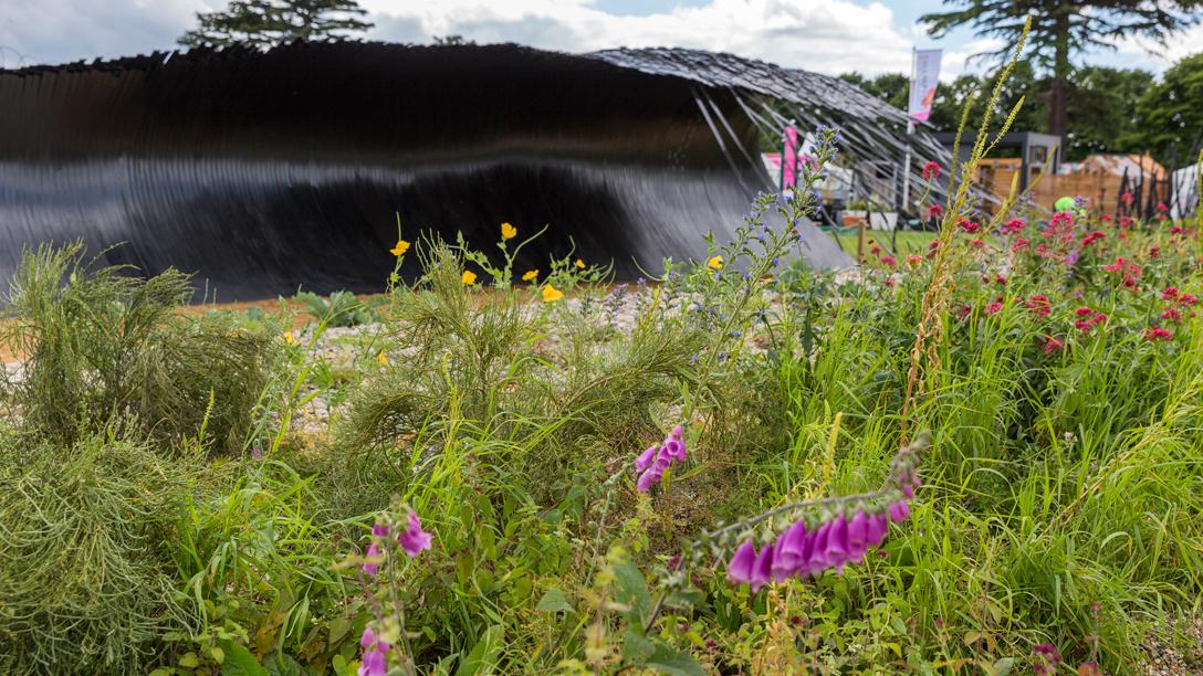 The wave is set amid a landscape inspired by Dungeness on the Kent coastline. The planting reflects the natural landscape of the coast, with wild flowers among other edible species.