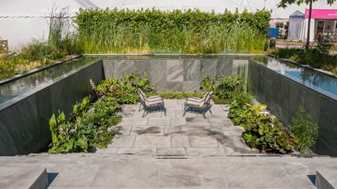 Immerse is a collaboration between sponsor and contractor Living Landscapes, first time show garden designer Cherry Carmen and Perennial, the charity that looks after gardeners and everyone who cares for our green spaces when times get tough. Having just finished a second round of chemotherapy, Cherry understands from personal experience the value of this type of support.