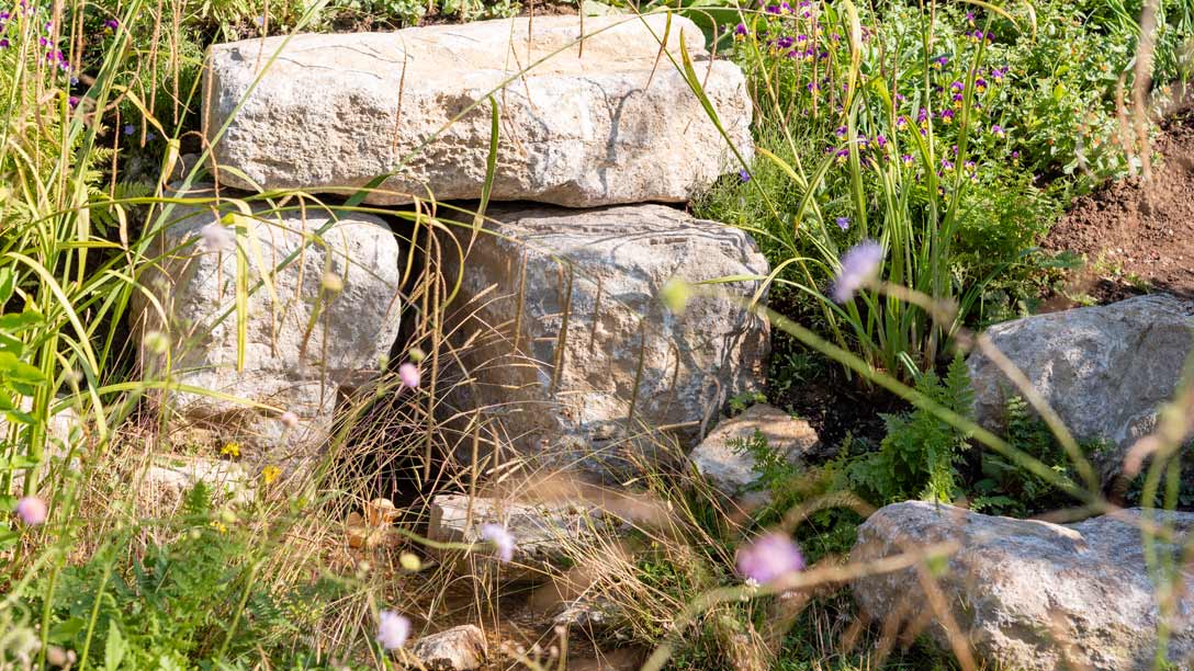 - Garden Designer, Ann-Marie Powell was delighted to see such a wide range of wildlife visiting the garden almost as soon as it was constructed. A water beetle moved into the pond before the show was even open, and chaffinches, red admiral butterflies, bees and damselflies have been enjoying the garden's varied planting
