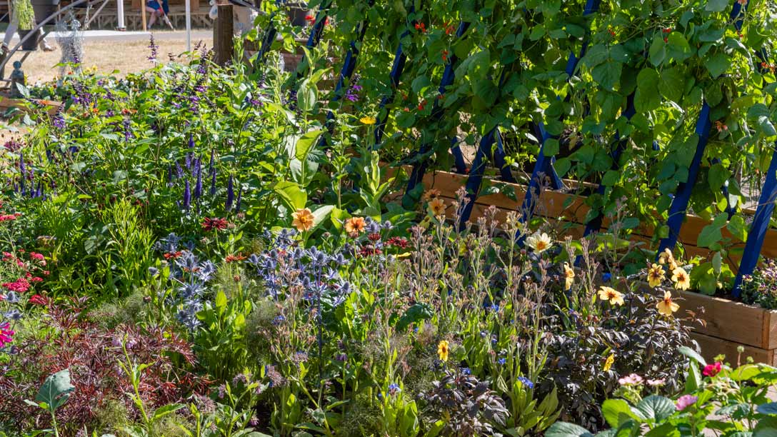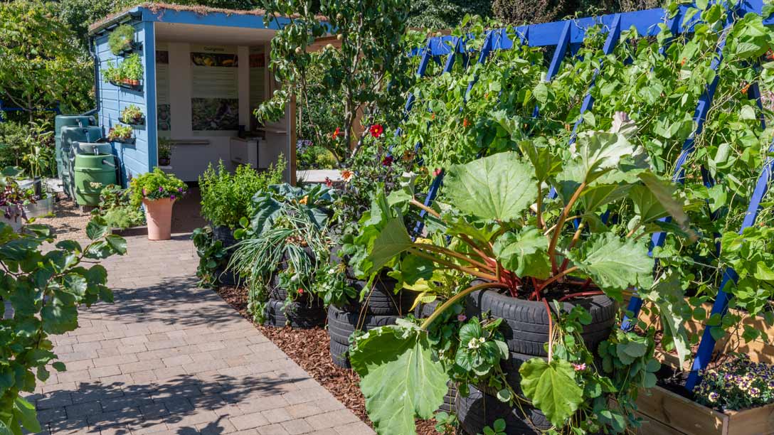Come and be inspired to grow produce in your own garden. This aspirational kitchen garden features simple, fun growing methods that are easy to try at home without too much outlay.Though it looks grand, the emphasis is on making the most of small growing spaces. With a focus on upcycled and recycled planters and innovative window boxes, there are plenty of take-home ideas and techniques that you can try in any setting – even the tiniest urban balcony.