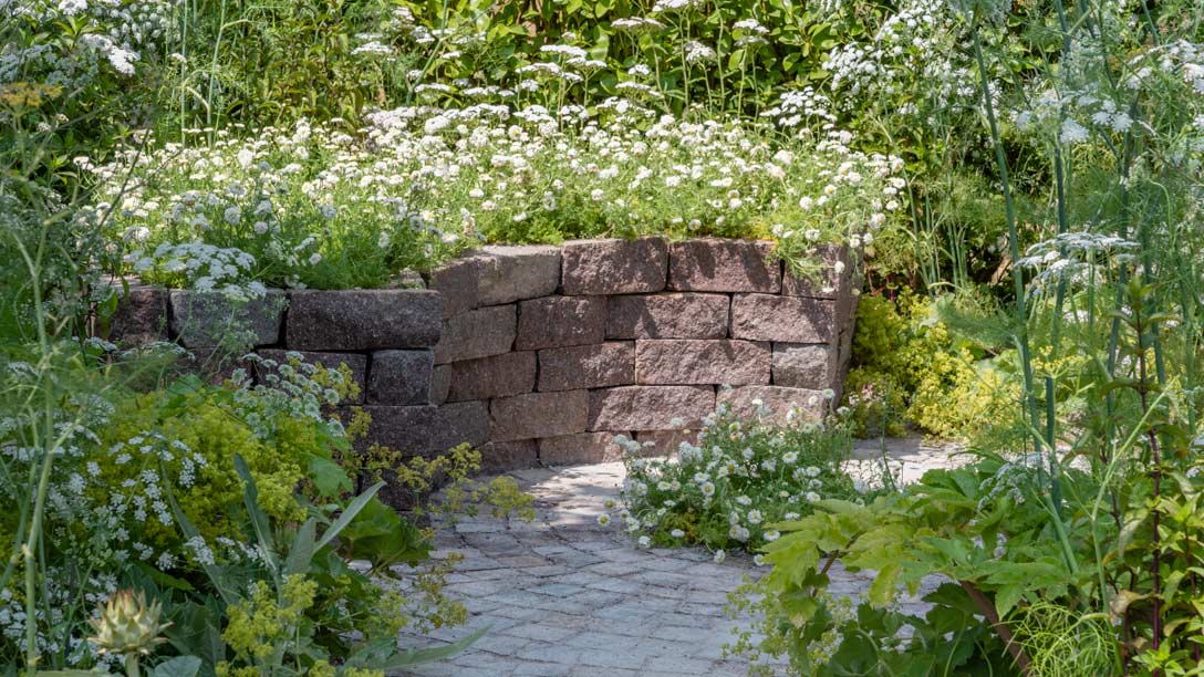 - A modern interpretation of a chamomile seat provides a deliciously scented place to rest while immersed in this gently meditative garden
